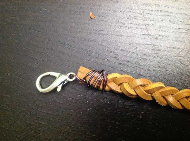 Gancho de la hebilla para el bucle de cuero o alambre que hiciste en el paso del principio.