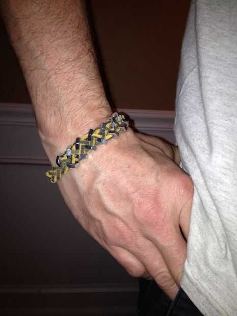¿(Intentando averiguar cuánto tiempo hacer esto para una sorpresa para papá? Aquí es una punta... Si es un portador de reloj, medir su reloj en el agujero 'usado' en la banda para ver de qué tamaño es cómodo para su muñeca)