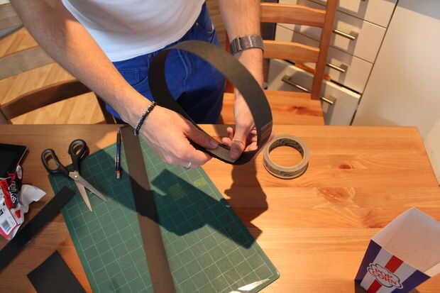 Coupez une bande de 2po et ajustez un anneau pour votre tour de tête.
