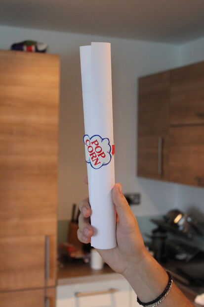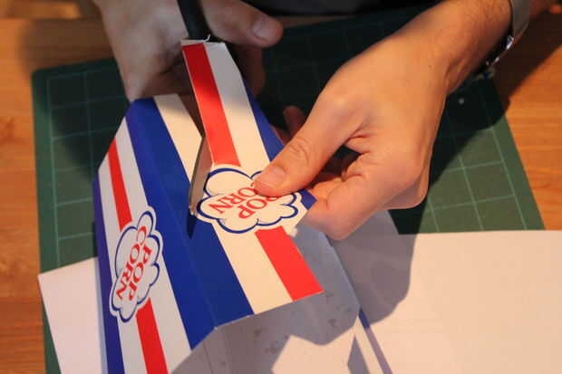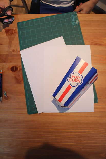 Con nuestro bajo presupuesto y la falta de materia prima, se utilizó una caja de palomitas de maíz y utilizan papeles.