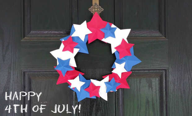 Este proyecto le mostrará cómo hacer una decoración fácil y divertida para celebrar el día de la independencia. Esta corona es de bajo costo y se ve muy bien en pantalla en su puerta o en cualquier otra zona de encuentro en el cuarto de julio. Se hace por superposición de capas de estrellas 3D de diverso tamaño en rojo, blanco y azul. Solo necesitas materiales muy sencillos de armar esto, y podrá terminar en una sola tarde. Con algunas técnicas simples pueden crear esta decoración llamativa para menos de un dólar en materiales!