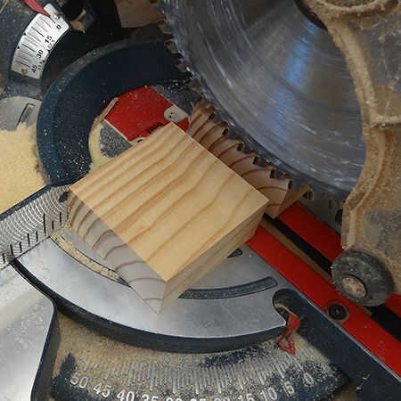 Los bloques se cortan cuadrados de 69 x 69mm con una sierra de inglete.