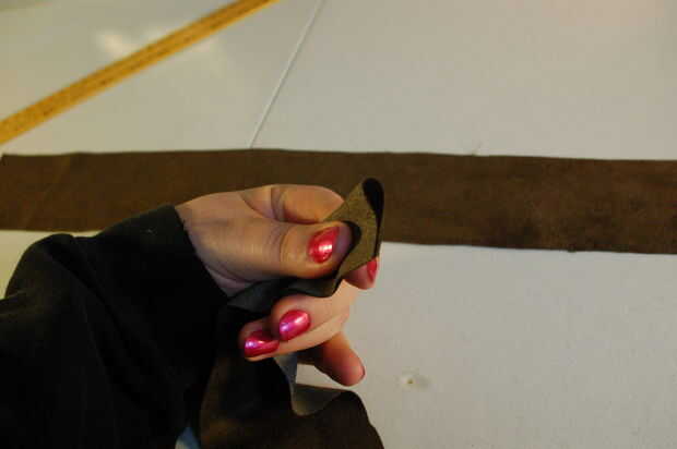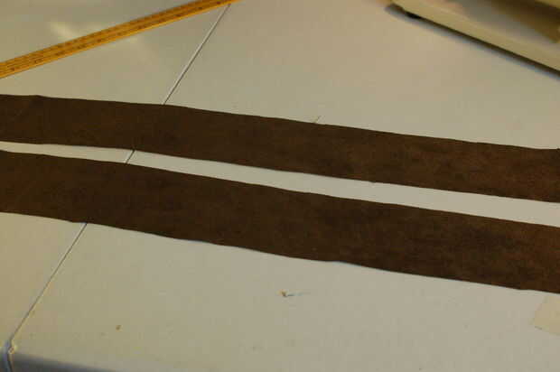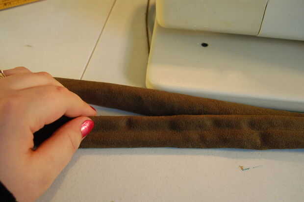 Para empezar, debes escoger el largo y ancho de las manijas, doble y no olvide añadir para margen de costura. Por ejemplo, quería dos manijas 1 pulgada de ancho y 20 pulgadas de largo. Corte mi tela (Recuerde que se trata de la misma tela que utilizaste para la parte inferior) 5 pulgadas de ancho porque lo corté por la mitad para cada uno manejar como subsidio se parecen. Cortar a la tela 22 pulgadas de largo porque cada lado de la manija se coserán en la bolsa de una pulgada para la estabilidad. Luego córtalo por la mitad longitudinalmente. Yo entonces tenía dos trozos de tela 2 1/2 pulgadas por 22 pulgadas.