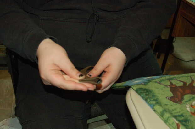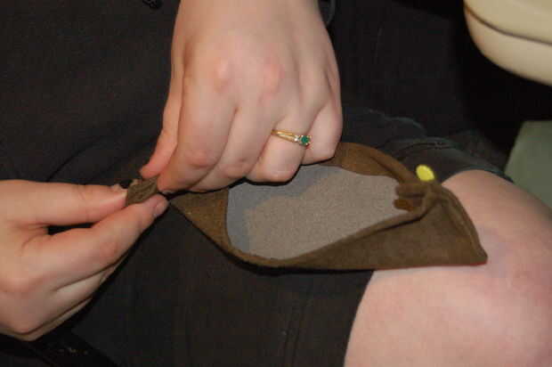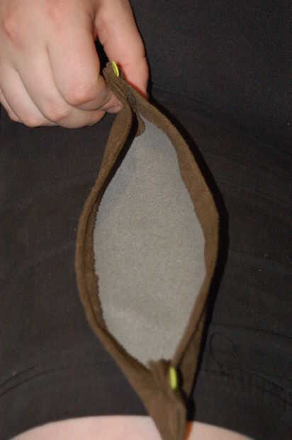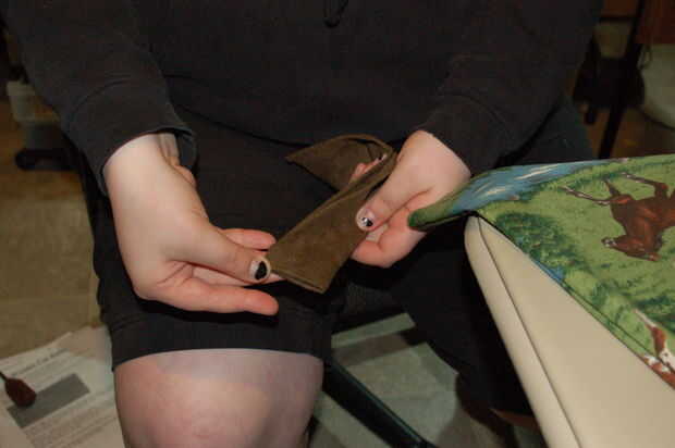 Ahora se repetirá ese mismo proceso para el otro lado, lo que resulta en una pieza de tipo de tela de que se asemeja a una canoa.