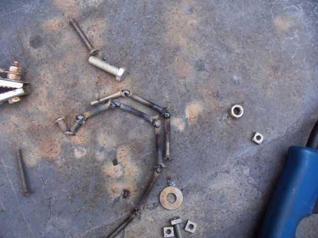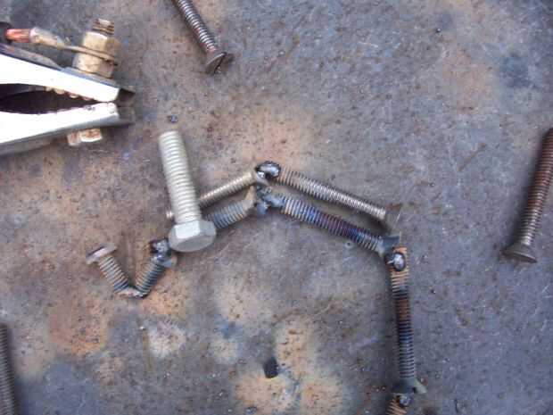 Continúe este proceso para el resto de los pernos. Con frecuencia, coloque la mitad original sobre el nuevo uno que está haciendo, para asegurarse de que estás en el camino correcto. Si usted comete un error, debe poder romper, porque no se han soldado la parte inferior todavía.