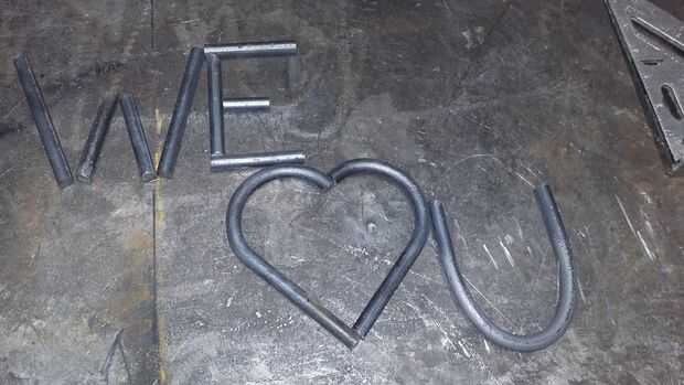 Para el corazón sólo sujeta la barra en el Banco de vicio y valerse de un extremo y tiró, sorprendentemente bastante él realmente doblado redondo en forma hice 2 mitades y luego soldando