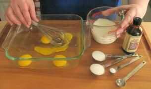 La mezcla de huevo debe parecerse un poco esto antes de empezar a mojar el pan (cuadro 5)