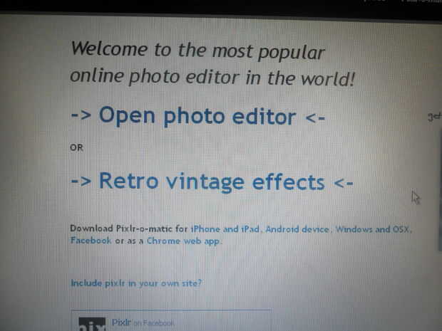 acabo de terminar jugando con Pixlr por primera vez y tengo que decirte fue apertura de ojos.Dejaba de pensar "Esto está ahí para que cualquiera pueda utilizar de forma gratuita"Un par de días abrí Pixlr y tenía una mirada alrededor. La primera
