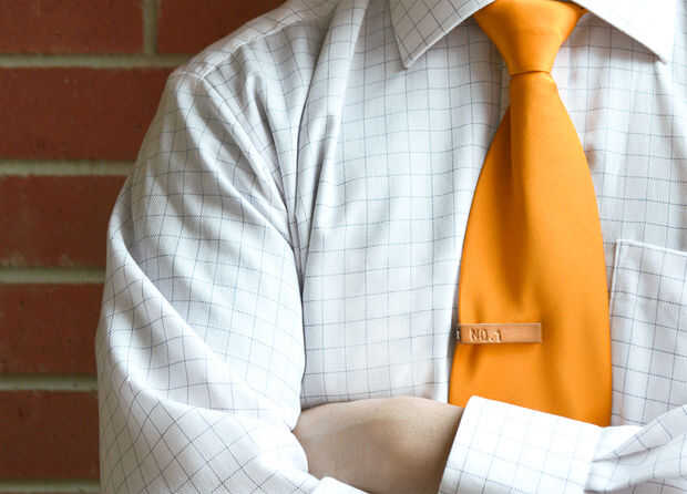 Utilice un epoxy para pegar su pequeño pedazo de cuero estampado a su corbata. Dejar secar y usar.