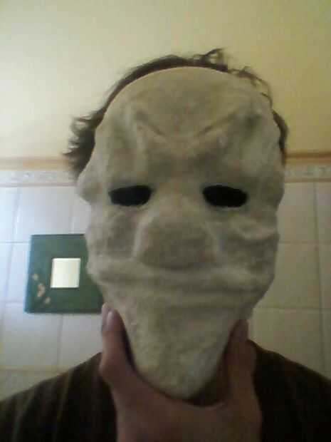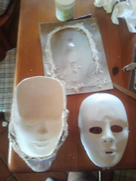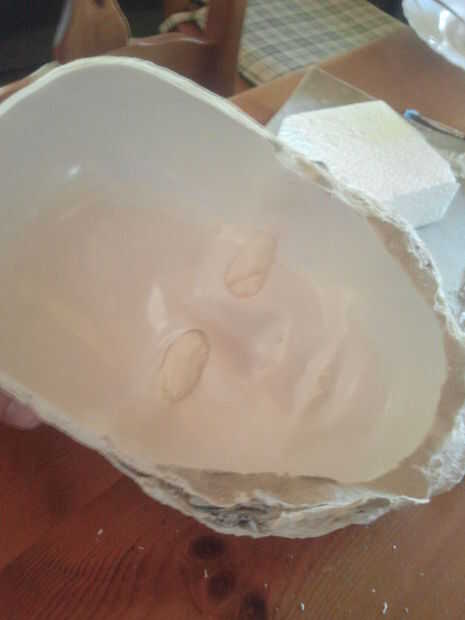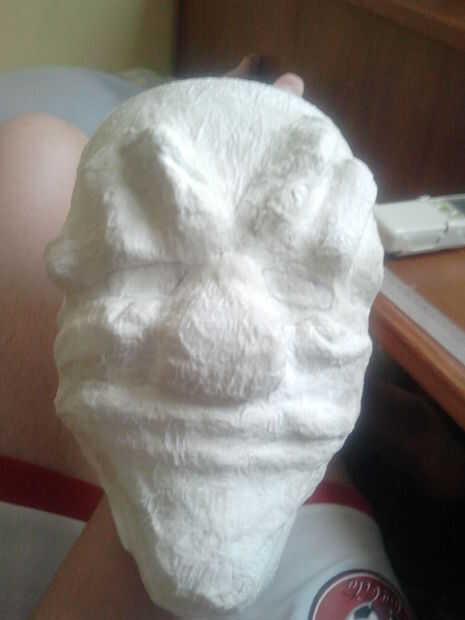 Finalmente, dibujar unos ojos grandes y terribles para nuestra máscara y utiliza tus mejores herramientas para cortar hacia fuera (utilicé una broca pequeña y una dremel) y utilizar un papel de lija otra vez para que se vea bien.