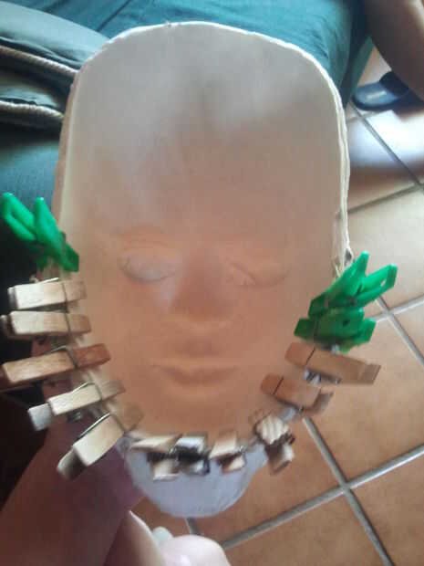 A continuación, lije los bordes con papel de lija fino y cola las grietas para que costumbre abren más y con algunas pinzas para la ropa deje que se seque.