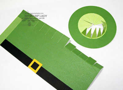 • Cortar las líneas punteadas en la parte superior de la pieza del sombrero de rectángulo.