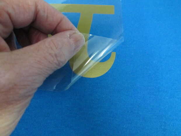 Ponga la plancha, retire el papel de pergamino y levante la esquina del plástico claro, si el oro p quedo en la tela, tire el resto del plástico. Si no, vuelva a colocar el pergamino y otro de hierro 10-15 segundos. Revise de nuevo.
