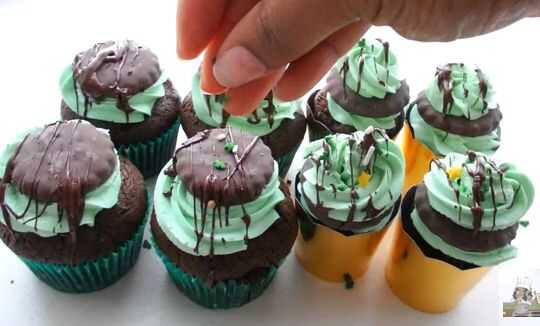 Opcional: Terminar con un chorrito de chocolate, verde chispitas y jimmies chocolate.