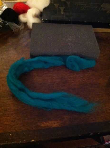 Una vez que la forma básica usted puede rodarla entre las manos para iniciar el proceso de batanado, esto sólo me ayuda a empezar. Entonces la voy a liarlo lenta y suavemente en la almohadilla de espuma mientras punzante con la aguja de fieltrar. No es necesario apuñalar en la plataforma, sus mechas sólo empujando en otras mechas para hacer la forma básica. Mientras que el cuerpo tomará forma y se puede ajustar según sea necesario para que sea uniforme y suave. Si usted consigue demasiado fina siempre puede agregar más mechas.