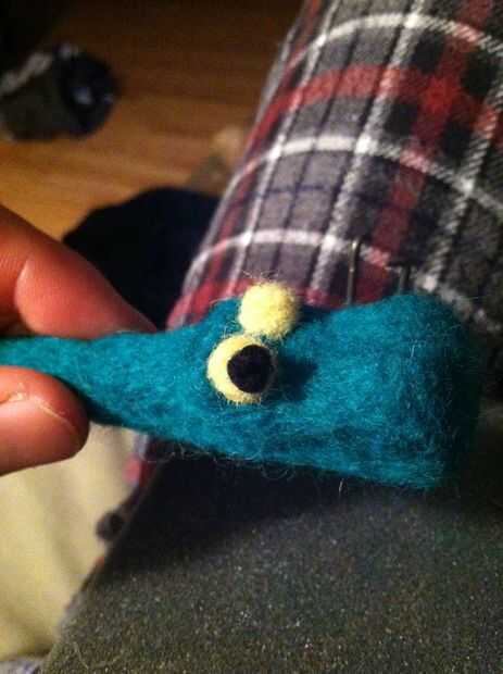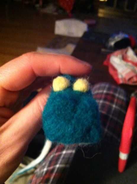 Usando una sola aguja sentía el ojo en el zócalo del ojo. Mantener un ojo en la forma por lo que permanece alrededor y aun con la otra. Con la sola aguja y algunos cuidados que usted puede hacer un bonito globo redondo que sobresale para lindo bicho de ojos mirada.