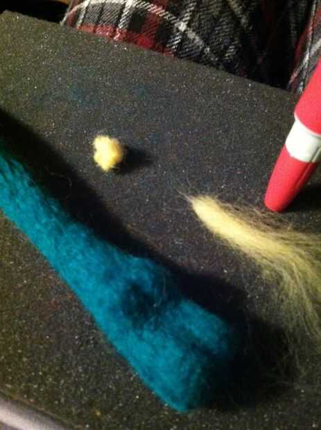 A continuación enrollar un pedazo negro más pequeño y colóquelo en el amarillo. Mantener de fieltrar, con el tiempo que se puede obtener todo el negro en el amarillo para un bonito globo duro.