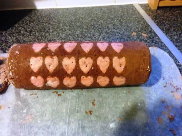 Día de San Valentín corazón suizo rollo (4 / 4 paso)