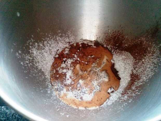 1. Tamizar el cacao en polvo y azúcar glas en la crema.