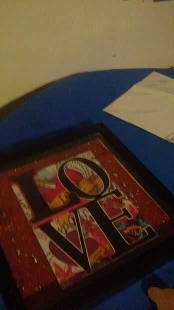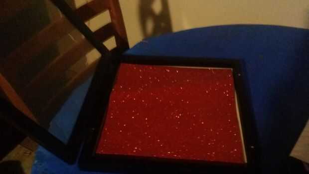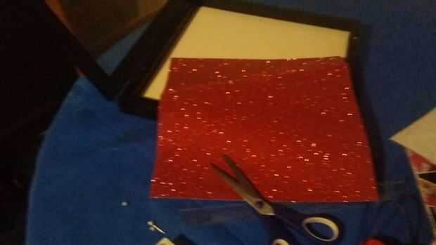 cortar el papel de scrapbook de brillo rojo para caber dentro de su caja de sombra (Foto #2)