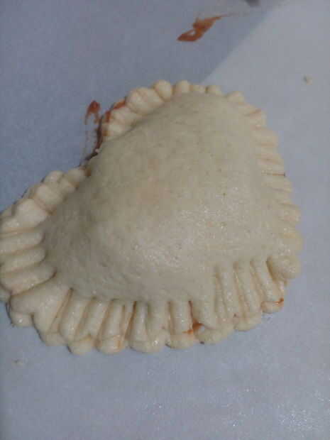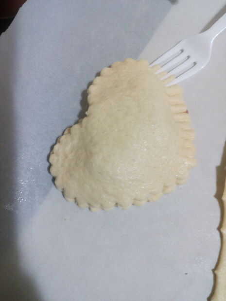 Coloque ambos corazones de masa presionando la masa con un tenedor.