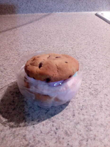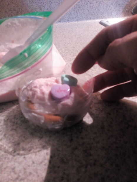Colocar una cookie en el corte de agua de botella. Coloque un helado en la cookie. Luego coloque algunos corazones de la conversación en el helado. Finalmente, cubrir el helado con otra galleta. Coloque el sándwich en el congelador. También puede verter un helado en un recipiente, espolvorear con corazones de la conversación y mojar una galleta en el helado.