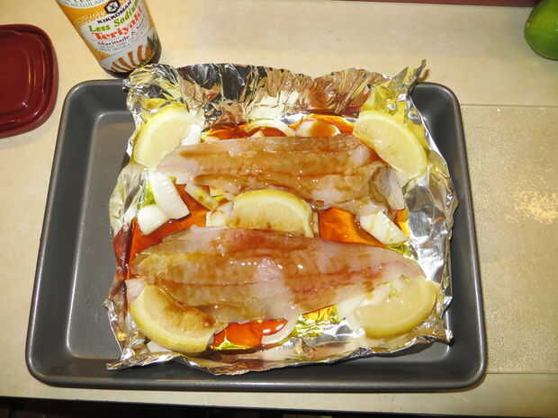 1. su favorita pescado cocido la forma que le guste a la plancha, al horno o fritas (funcionará su pescado blanco favorito), usé lenguado)