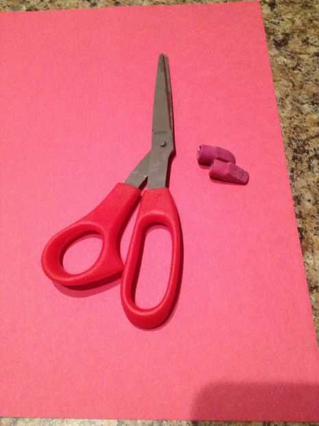 par 2 gomas de borrar 1 de tijeras 1 pedazo rojo de papel