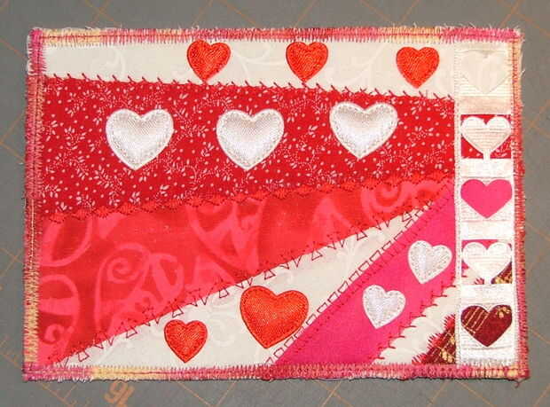 Tela, San Valentín, Día, Amor, Cinta, Celebración, Postal, Coser, Acolchado, Tarjeta, Saludo, Fusible, Edredón, Tarjeta de saludos, Timtex