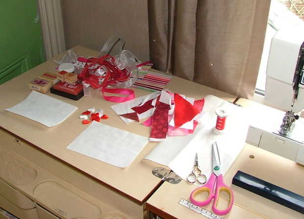retazos de tela de algodón rojo, blanco o rosa