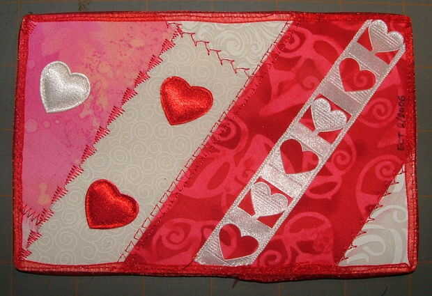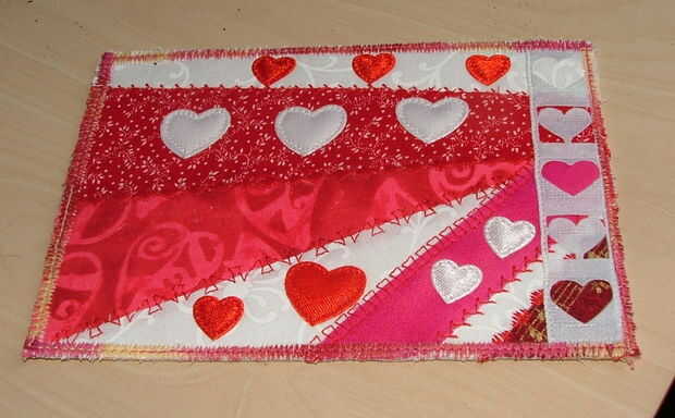 Me gusta usar un zigzag con un ancho de puntada ancha y una longitud de puntada corta. A menudo voy a alrededor de la tarjeta todo dos veces, la segunda vez con una puntada un poco más amplia para obtener buena cobertura. Dejar que la caída de la aguja "fuera el borde" debe asegurar que el borde está completamente encerrado.