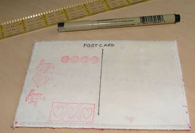 Utilizar el lápiz para escribir postal en el centro del borde superior, justo en la costura (es aparentemente necesario para el USPS y no hace ningún daño para cualquier otro servicio postal)
