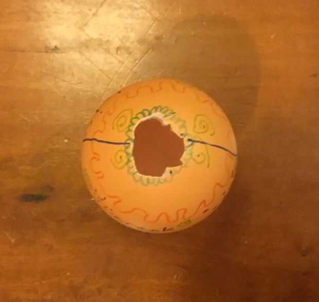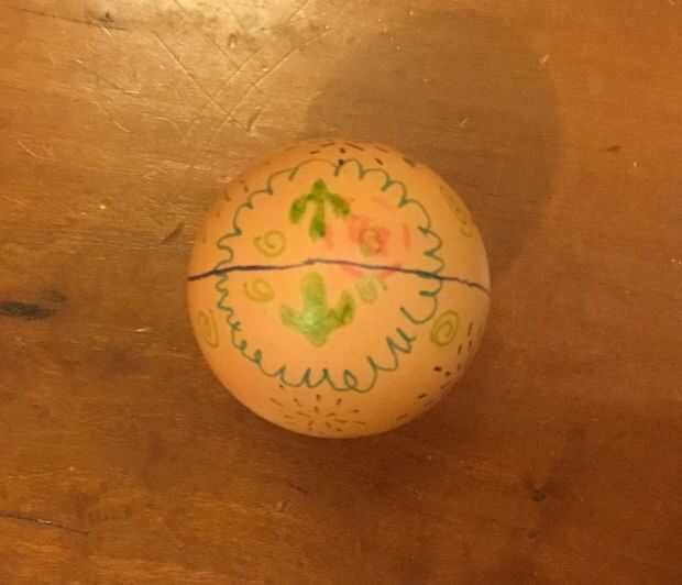 OK, esta es la diversión parte! Laicos/colgar su huevo en algún lugar donde puede decorar el huevo y empezar a decorar! Usted puede elegir lo que quieras decorar o pintar sobre el huevo, sea creativo! Usé una variedad de sharpies de punta fina. Deje que la pintura seca (si se utilizó alguno), a continuación, escriba "crack me" en el lado con un utensilio de escritura, preferiblemente un rotulador de punta fina.