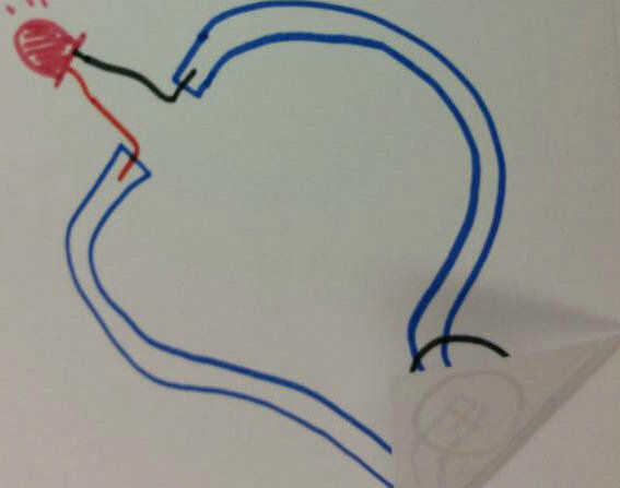 Aunque hay dos círculos de batería sólo utilizará una batería, yo sólo quería denotar donde irían los lados positivos y negativos. La línea punteada representa donde el papel se dobla para completar el circuito y se utiliza como un interruptor.