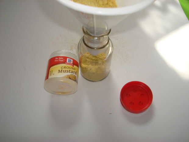 Mi receta de mostaza en polvo (cualquier recipiente de tamaño está disponible), una pizca de azúcar y una pizca de sal, agua hirviendo, (suficiente para hacer una pasta) y un poco de aceite para evitar que la mostaza convirtiéndose en cemento. He estado usando esta receta durante mucho tiempo. Es más caliente que las mostazas chinas encontradas comercialmente. (Yo he sido acusado de poner rábano picante) Que debe satisfacer su deseo de caliente. Disfrute!.