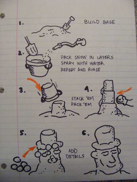 5. crear tu bucketman amontonamiento tus cubos de bloque de nieve húmeda en su forma básica del muñeco de nieve. Golpear el cubo con una pala para sacar el snowblock. Crear altura apilando los bloques cubo. Utilice más nieve para empacar y llenar los vacíos. Use la manguera para rociar más agua para ayudar a que la nieve se unen. Esperemos sea lo suficientemente fría que esta el agua extra congelar y congelar la masa. Pack y aerosol... pack spray... paquete y spray...