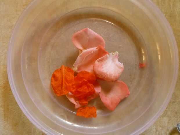También, recoger algunos pétalos de flores frescas desde el jardín, que voy a utilizar para incrustar en las cáscaras.