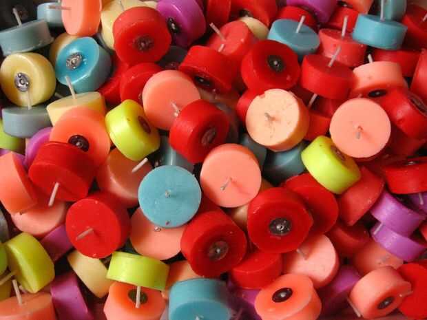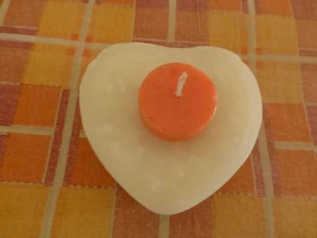 Seleccione una vela de luz de té de cualquier color de su elección. Aquí, he seleccionado una luz de té de color rojo claro. Fije la luz del té en el centro de la base con un poco de cera fundida. Alternativamente, puede colocar la luz del té en un sartén caliente y retire inmediatamente y fijar en la base.