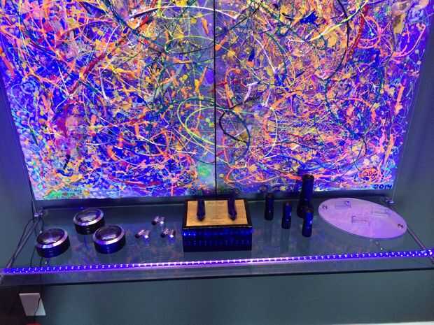 Mantener la funcionalidad del usuario en mente con la adición del estante de cristal y el elemento magnético caso añadido. Por suerte una toma de corriente para la iluminación fue también cerca de la ubicación de instalación, permitiendo una exposición mínima de los cables de alimentación. Con esto también se incluyó un libro de mesa.