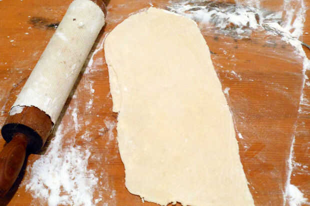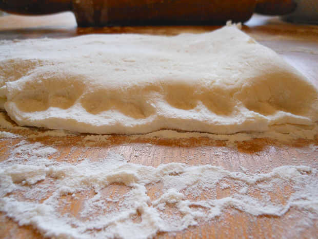 1. después de hacer la tarta, recoger los recortes de masa exceso y volver a combinar en una bola. Estirar hasta 1/4 de espesor.