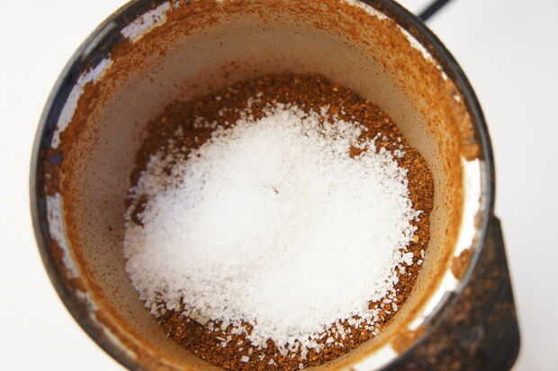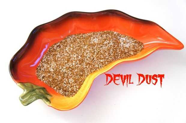 Diablo de polvo Ingredientes: Chiles secos 1 Chile Habanero 1 Chipotle 1 Nuevo México a.k.a Anaheim 1 Ancho 2 cdas + 2 cdtas Kosher sal = para amoladora 2 cucharadas de Sal Kosher Equipo: Amoladora de la especia Tajada de Lima o jarabe Simple Receta: Romper los tallos de los chiles secos. A continuación, agregarlos a la amoladora de la especia. Mezcla 3 veces hasta que la mayoría de los chili peppers ha convertido finamente molida. Abrir el molino y usar las manos para rasgar las partes restantes de los chiles en pedazos pequeños. La amoladora del pulso tres veces. A continuación, agregue la sal. 2 cucharadas + 2 cucharaditas de rutina durante 20-30 segundos, o hasta que la sal se mezcla bien en la mezcla de pimienta de Chile. A continuación, añadir el polvo de diablo a un bol y agregar 2 cucharadas de sal. Revuelva con una cuchara para combinar. El vidrio del borde: mi arma secreta al borde de un vaso con sal es usando un almíbar. Funcionará una de cal, pero el jarabe simple se adhiere mejor. Permita que la sal se seque durante unos minutos antes de añadir la Margarita. Saludos!