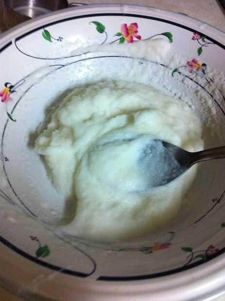 Mezclar la leche de coco 1/2 taza con 1/2 taza agua fría