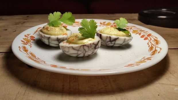 huevos picante, ahumadas... Diablo verdaderoPaso 1: preparar Ingredientes:-huevo duro (cortar por la mitad y sacado con pala)-japonesa mayo-pimienta de Cayena-Español ahumado pimentón-panchetta o tocino-mostaza de dijon-vinagre blanco-escamas del Chi