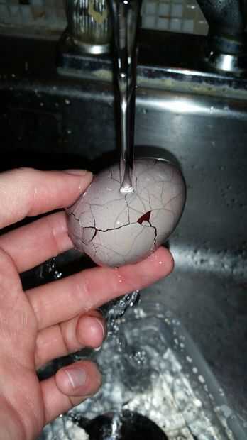 Después de disfrutar de los huevos, es hora de pelar. Si dejaron en la nevera durante la noche, retire. Si son todavía calientes del vino, darles un baño de 20 minutos en agua fría para facilitar el pelado.