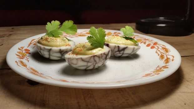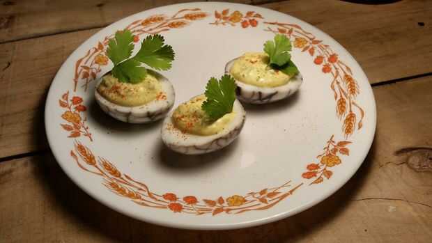 Si el relleno es un poco mocosa, guardar en la nevera antes de que se vierta en las yemas.