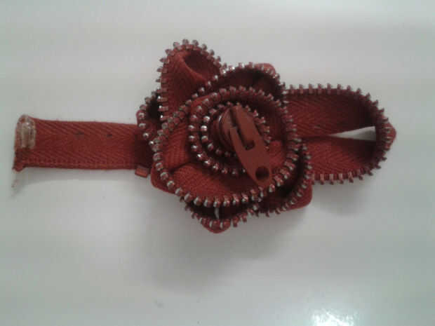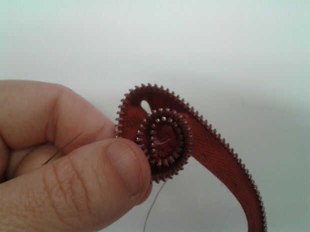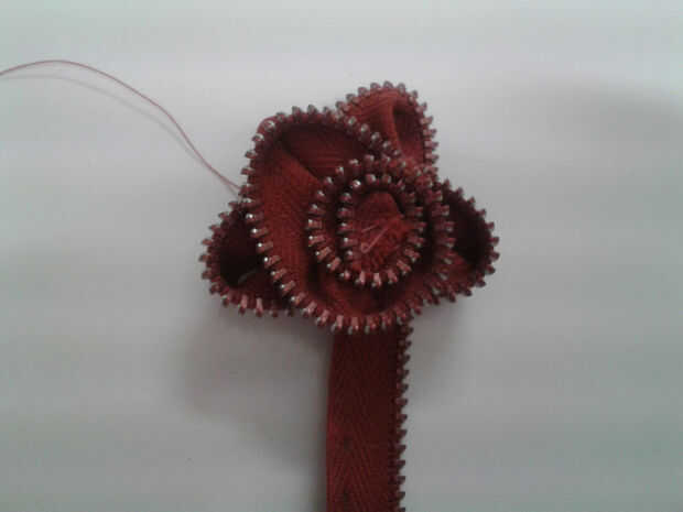 Esta vez, en vez de hacer un círculo plano, hacer un lazo plano que sale un poco más amplio y puntada en su lugar. Este es el primer pétalo de la flor. Doblar la cremallera por debajo y otro pétalo en un lugar diferente. Mantener haciendo pétalos hasta que estés contento con cómo se ve o hasta que esté a punto de quedarse sin cremallera. Si usted tiene cualquier cremallera sobra, pueden hacer un lazo más grande para que se vea como una hoja. Para el centro de la flor, puede pegarse algunos botones en como yo lo hice con el fascinator, o el tirón de la cremallera como lo hice con la venda más pequeña. Me gusta el tirón de la cremallera ya que puede decir lo que se hace de más fácil. Que uno utiliza usted puede simplemente pegar en su lugar con la pistola de pegamento caliente.