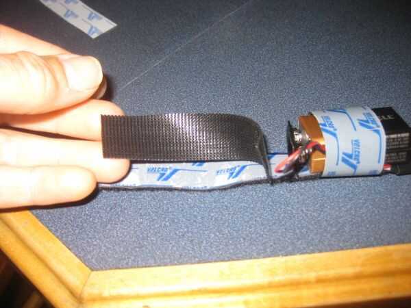 -Coloque una batería de voltio 9 fresco en la ' velcro Espinosa. Posición por lo que fácilmente puede conectar el clip de la batería.