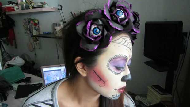 Hola allí!Recientemente he recibido varias peticiones de mis clientes de eBay para subir mis tutoriales de maquillaje de Zombie en Instructables así que aquí está!...Paso 1: Paso 1 / ojos y pelo Sallie lleva los contactos tradicionales zombie blanco