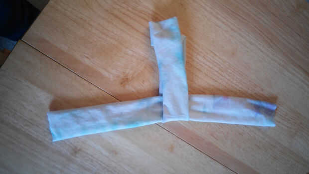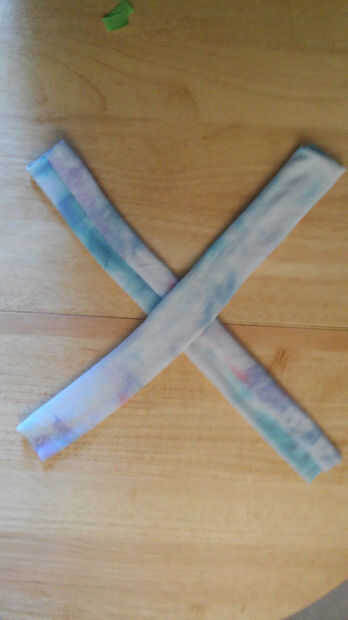 1. fijar las piezas cosidas para que tomar la forma de una X.