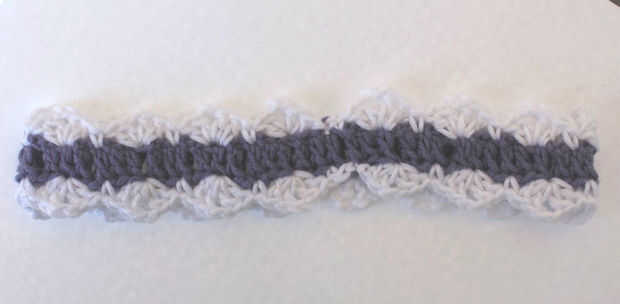Sólo vas a repetir el último paso alrededor, luego puntada de resbalón al principio para garantizar. Ajuste de Color B, y la venda principal es completa. Tampoco puede dejarla como es o seguir con la flor.
